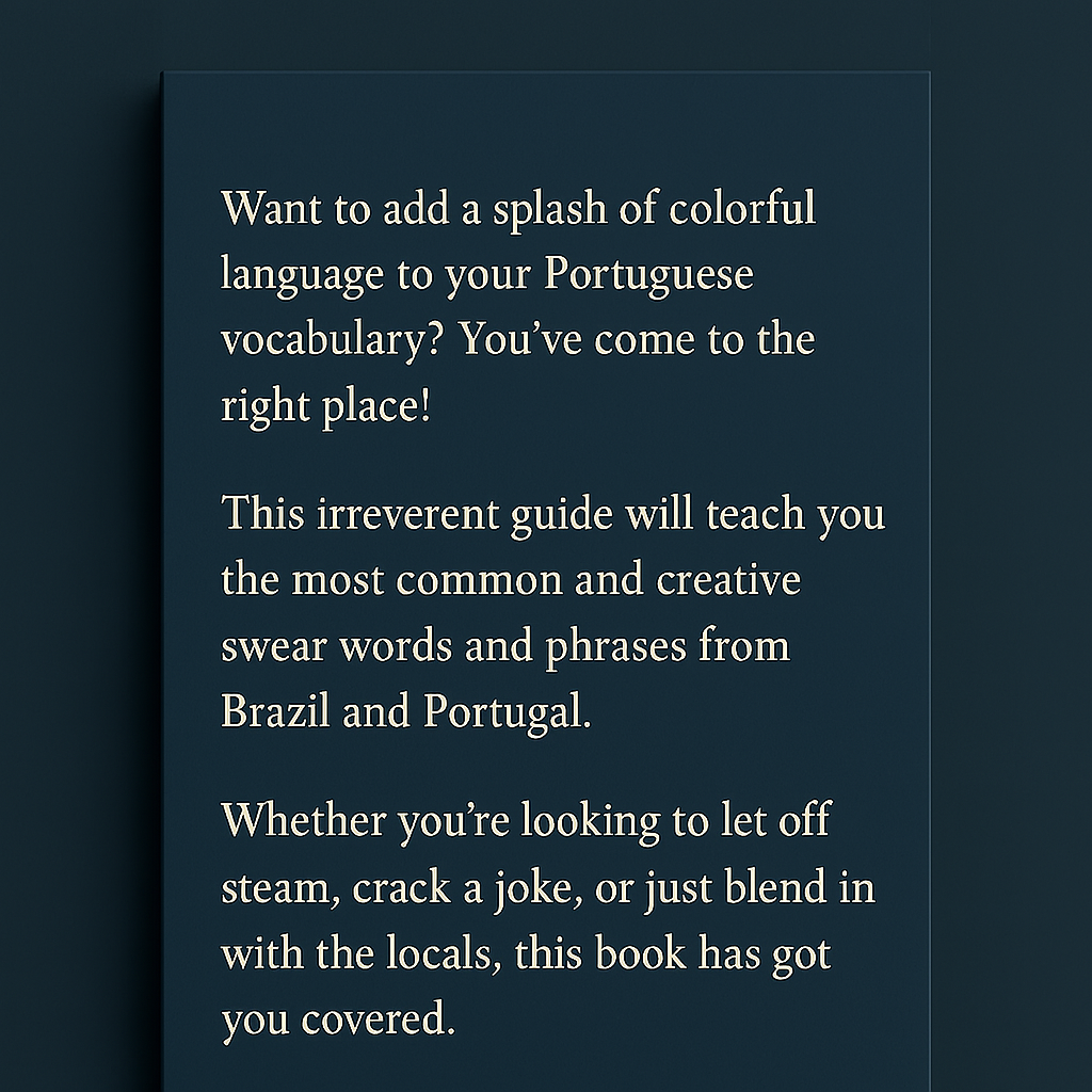 "How to Swear in Portuguese" is the funniest and most direct guide to learning Brazilian swear words and expressions. Ideal for those who want to understand local language and have fun while learning. Over 15 Brazilian expressions Pronunciation and meaning Cultural and funny examples